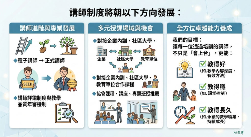 ✅ 長期投入講師培訓與教學制度發展
